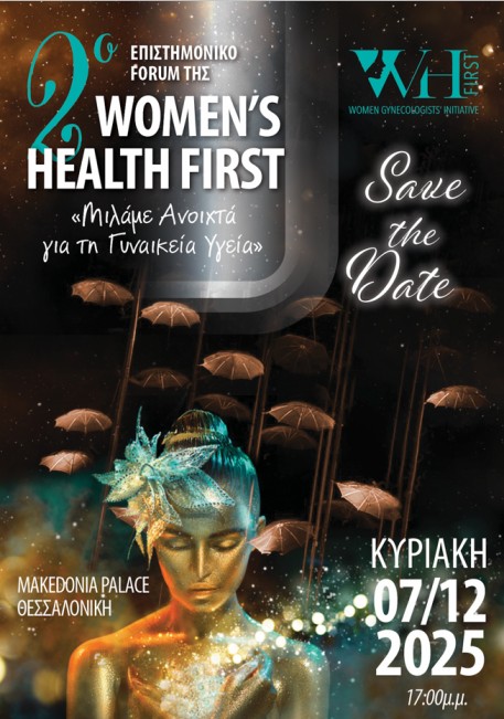 Με ιδιαίτερη χαρά, σας προσκαλούμε να συμμετάσχετε στο 2ο Επιστημονικό Forum για τη γυναικεία υγεία της «Women’s Health First», της πρώτης πρωτοβουλίας Γυναικών Γυναικολόγων με κοινωνικό χαρακτήρα για τη γυναικεία υγεία, που διοργανώνεται το απόγευμα της Κυριακής στις 7 Δεκεμβρίου στη Θεσσαλονίκη, στο Makedonia Pallas.