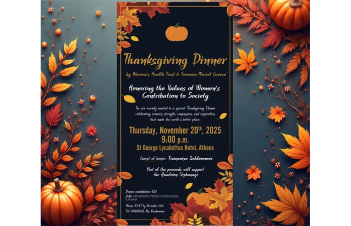 Ένα μοναδικό φιλανθρωπικό Δείπνο Ευχαριστιών, με άρωμα γυναίκας, πραγματοποίησαν με μεγάλη επιτυχία η Women’s Health First & η Feminin Pluriel Greece την Πέμπτη, 20 Νοεμβρίου 2025 στο Ξενοδοχείο St George Lycabettus στην Αθήνα. Σκοπός του φιλανθρωπικού δείπνου ήταν η υποστήριξη του Αμαλίειου Οικοτροφείου Θηλέων και η συνέχιση του έργου προσφοράς στην κοινωνία και στην γυναίκα...